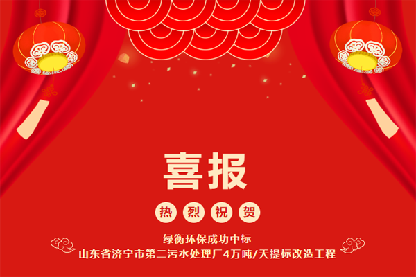 3. 熱烈祝賀綠衡環保成功中標山東省濟寧市第二污水處理廠4萬噸/天...