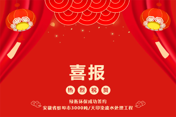 2. 熱烈祝賀綠衡環保成功簽約安徽省蚌埠市3000噸/天印染廢水處...