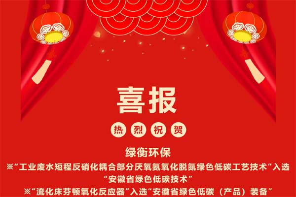 6. 跨年喜報 | 綠衡環保兩款核心產品技術入選“安徽省綠色低碳(...