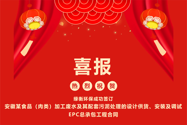 8. 熱烈祝賀綠衡環保成功簽訂安徽某食品(肉類)加工廢水及其配套污...