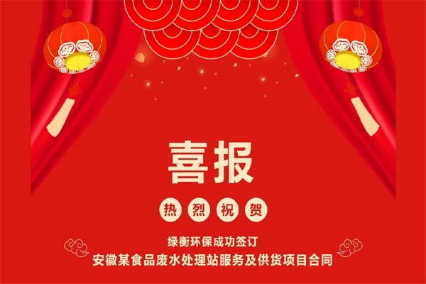 5. 熱烈祝賀綠衡環保中標且成功簽訂安徽某食品廢水處理站服務及供貨...